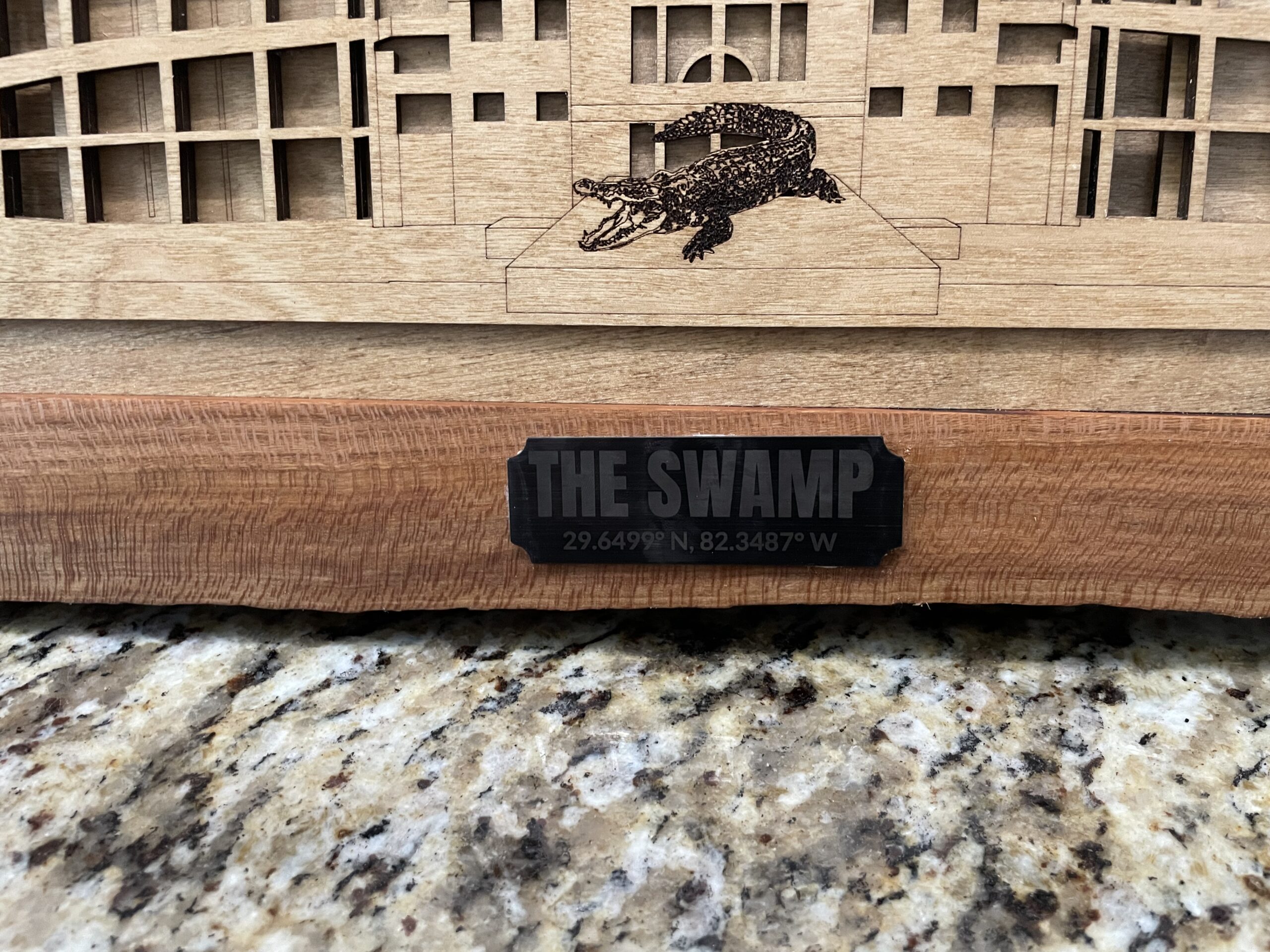 This particular plaque was to label the custom frame I did to denote it was for the Florida Gators stadium named The Swamp along with the latitude and longitude.