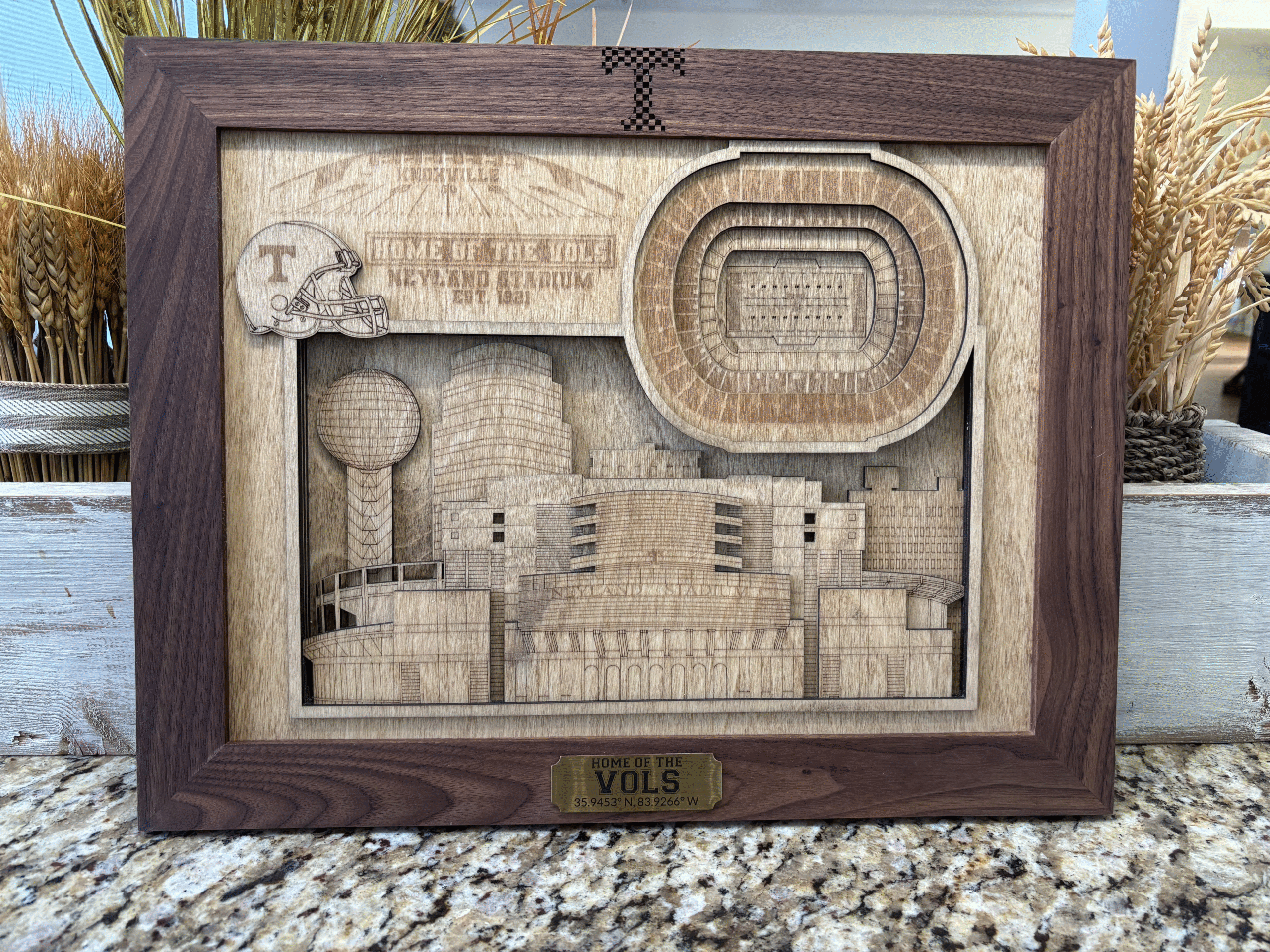 Show your University of Tennessee pride with this handcrafted custom wood stadium display—a unique piece of sports décor that captures the energy of game day. Perfect for any fan, it combines craftsmanship with customizable details to make it truly yours.
